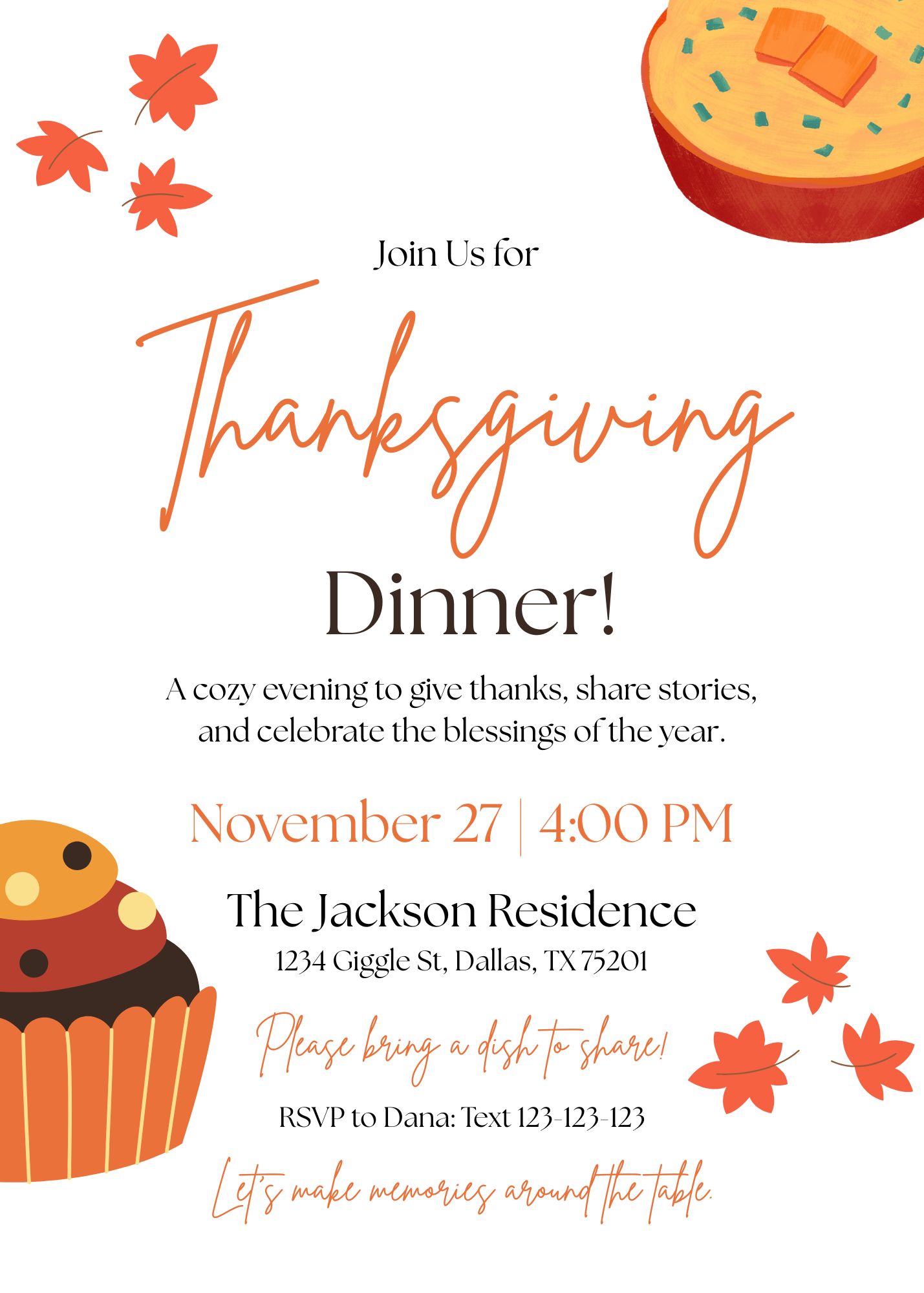 Editable Join us for a Thanksgiving Dinner Invite Template